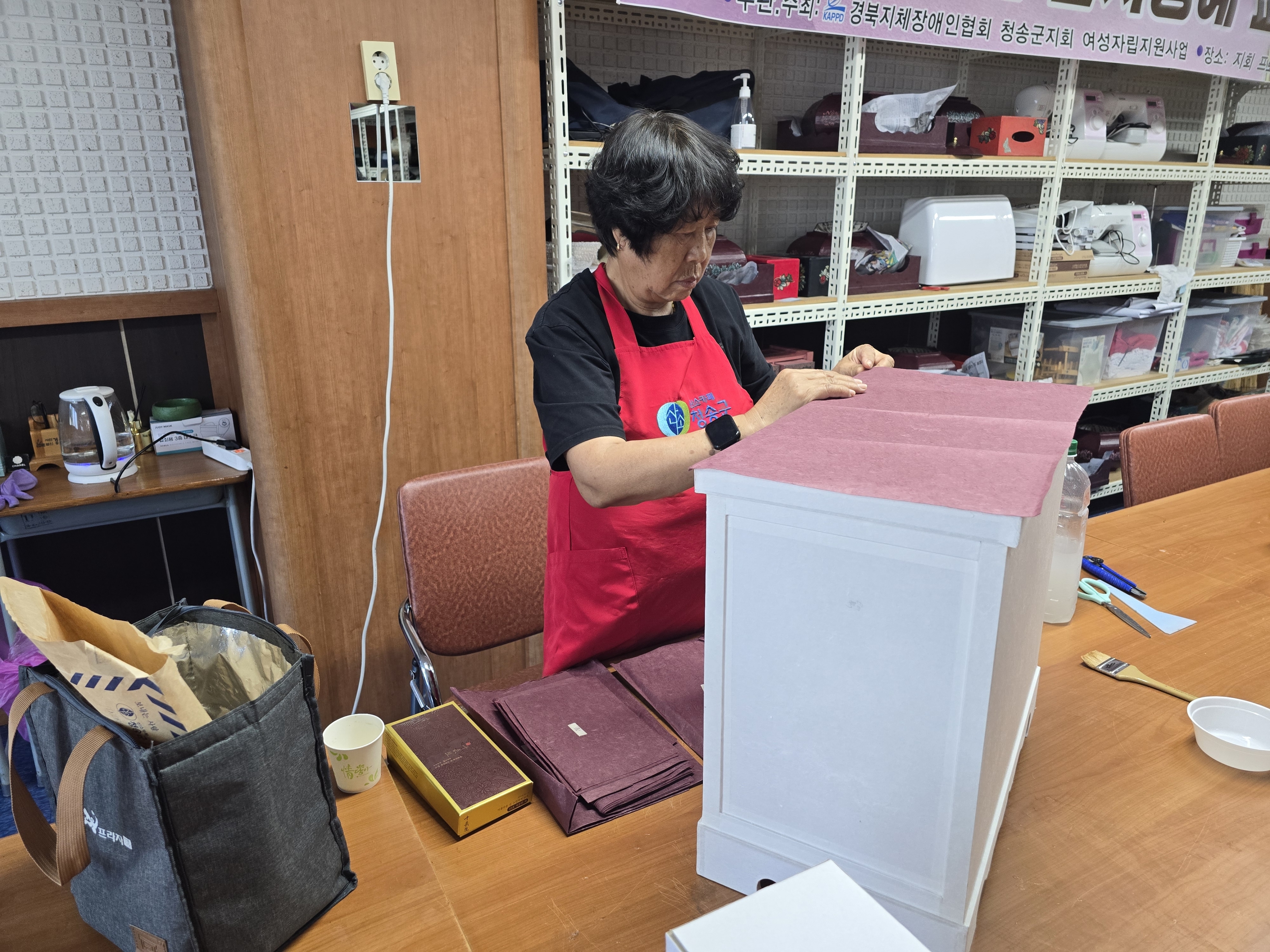 [여성] 2025 여성장애인 한지공예 자조모임 7차 진행 최고관리자 0 253 2025.12.01 17:45 2025 여성장애인 한지공예 자조모임한지공예 자조모임 7차 진행2025. 9. 26.(금) 13:00~15:00김태순(현동) : 6서랍, 3단 서랍, 사각단지 임복순 : 6서랍, 반닫이 함김태순(청송) : 5단서랍, 앵두장, 휴지함