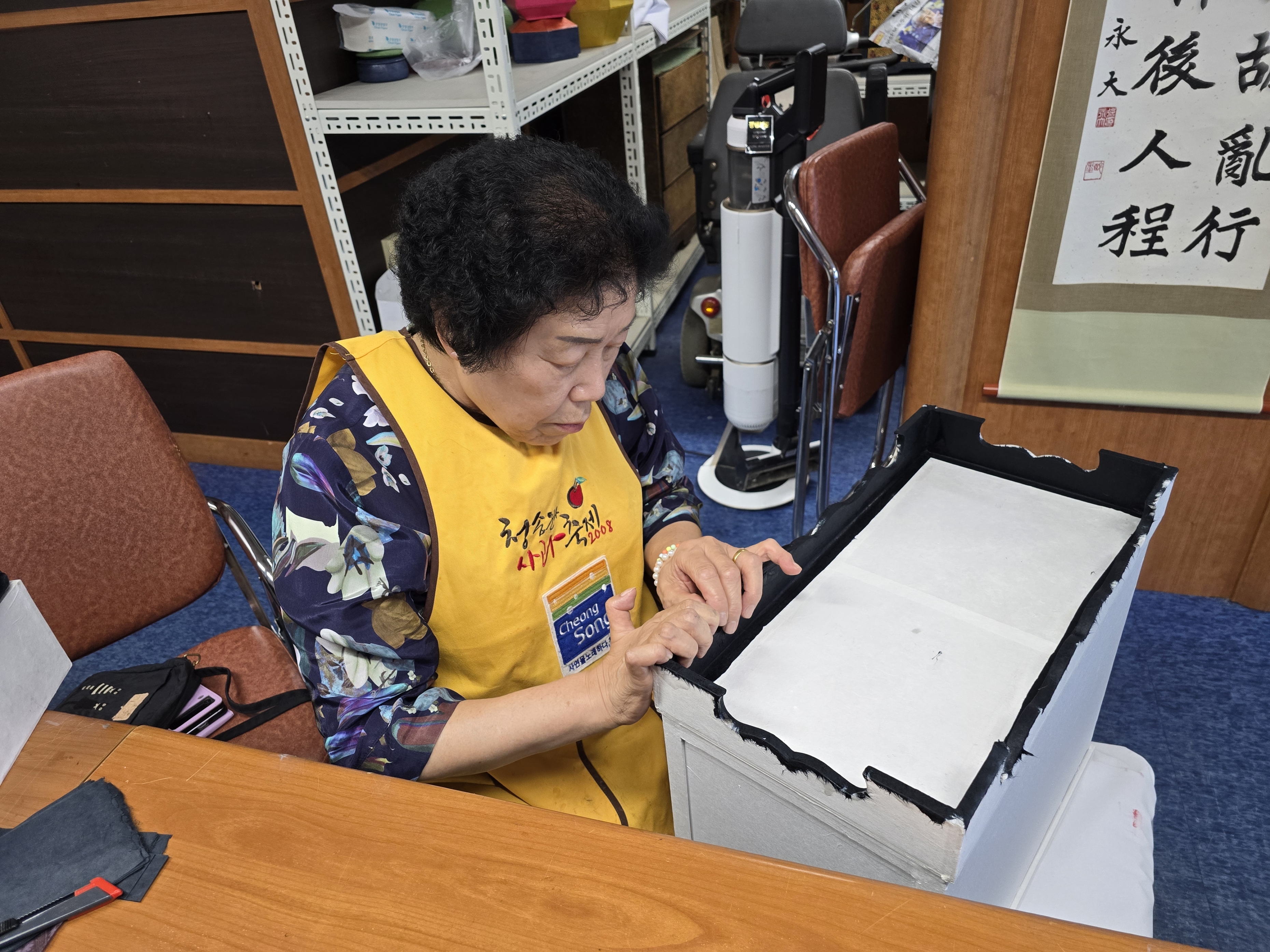 [여성] 2025 여성장애인 한지공예 자조모임 4차 진행 최고관리자 0 367 2025.09.10 18:55 2025 여성장애인 한지공예 자조모임한지공예 자조모임 4차 진행2025. 9. 5.(금) 13:00~17:00임복순 : 6서랍, 반닫이 함 겉지 바르기김태순(청송) : 5단서랍, 앵두장, 휴지함 겉지 바르기